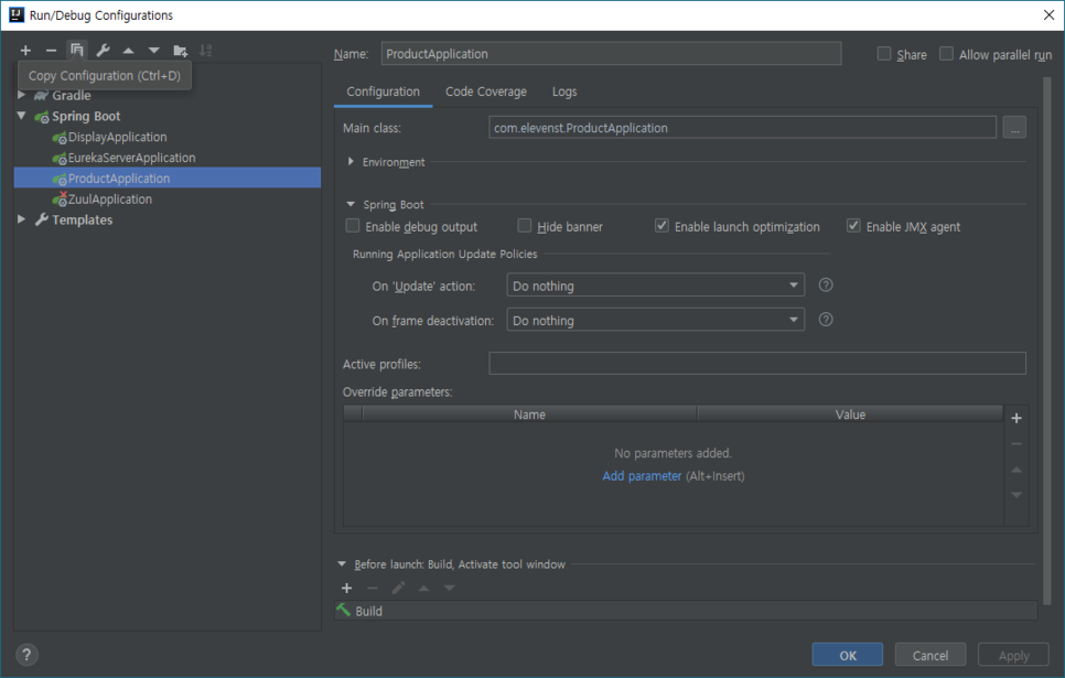 포트를 다르게 할 서버를 선택 후 -> 왼쪽 위의 Copy Configureation 선택